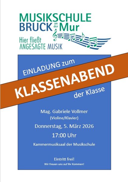 Sie sind hier: Aktuelles klassenabend der Klasse MMag. Andreas Farnleitner Weiterlesen Klassenabend der Klassen Marlies Maierbrugger MA, Martin Temmel MA Weiterlesen Klassenabend der Klasse René Fürpaß Weiterlesen 1. Orchester-Konzert Young Artists Vol.3 Weiterlesen Klassenabend der Klasse Klement Feichtenhofer Weiterlesen Klassenabend der Klasse Mag. Gabriele Vollmer Weiterlesen Faschingsparty Weiterlesen Klassenabend der Klasse Mag. Heidemarie Berliz-Schaumann Weiterlesen Klassenabend der Klasse Marigona Komani Weiterlesen Klassenabend der Klasse Mag. Alexia Pernusch Weiterlesen Kammer-Matinee_Magic Brass Vienna Weiterlesen Soundscapes_Orchester der Musikschule Weiterlesen Klassenabend der Klassen Mag. Sylvia Hollerer, Mag. Angelika Piccolotto Weiterlesen Kuscheltierkonzert Weiterlesen Klassenabend der Klasse Mag. Irmgard Schnedl Weiterlesen Adults Only Weiterlesen Kammer-Matinee_Walzerperlen Weiterlesen Klassenabend der Klassen Dr. Emilia Molnar, Mag. Gabriele Vollmer Weiterlesen Großes Weihnachtskonzert Gesamtleitung: MMag Andreas Farnleitner Weiterlesen Klassenabend der Klasse Mag. Heidemarie Berliz-Schaumann Weiterlesen Klassenabend der Klasse Mag. Jörg Haberl und Alessandra Reiner, BA MA MA Weiterlesen 3. Orchester-Konzert Weihnachtsoratorium Johann Sebastian Bach Weiterlesen Klassenabend der Klasse Klement Feichtenhofer Weiterlesen Serenadenkonzerte Mag. Sigrid Rennert Weiterlesen Klassenabend der Klasse Mag. Alexia Pernusch Weiterlesen Klassenabend extern Jazz Ensemble der Musikschule Bruck Weiterlesen Schlusskonzert SolistInnen und Ensembles der Musikschule Weiterlesen Klassenabend der Klasse Mag. Gabriele Vollmer Weiterlesen Klassenabend der Klasse Martin Temmel, MA Weiterlesen Klassenabend der Klasse Marigona Komani Weiterlesen Sommerkonzert Solist*innen und Ensembles der Musikschule Weiterlesen Klassenabend der Klasse Cagatay Ata, Bsc BA BA Weiterlesen Vocal Night der Klassen Lena Mentschel, MA; Johanna Seitinger, BA BA BA Weiterlesen Klassenabend der Klasse Michael Fabjancic-Lagger, BA BA MA MA Weiterlesen Tag der offenen Tür Weiterlesen Klassenabend der Klasse Mag. Irmgard Schnedl Weiterlesen 2. Orchester-Konzert: Young Artists Vol.2 Weiterlesen Liederabend_Klasse für Gesang Mag. Sigrid Rennert Weiterlesen Klassenabend der Klasse Lukas Raumberger, BA Weiterlesen Klassenabend der Klasse Mag. Heidemarie Berliz- Schaumann Weiterlesen Klassenabend der Klassen Mag. Gerlinde Lenger und Nicole Urdl, BA MA Weiterlesen Klassenabend der Klasse Klement Feichtenhofer Weiterlesen Klassenabend der Klasse Dr. Emilia Molnar Weiterlesen Klassenabend der Klasse Manuel Schuster Weiterlesen Klassenabend der Klassen Mag. Jörg Haberl, Alessandra Reiner BA, MA Weiterlesen Klassenabend der Klasse Mag. Ulrike Beermann Weiterlesen Klassenabend der Klasse MMag. Andreas Fahrnleitner Weiterlesen Young Styrian String Orchestra Serenadenkonzert Weiterlesen Klassenabend der Klasse Mag. Gabriele Vollmer Weiterlesen Konzert unserer erwachsenen Schüler: innen Weiterlesen 1. Orchester-Konzert: Happy birthday, Johann Strauss! Weiterlesen Klassenabend der Klasse Mag. Oliver Holzer-Gilg Horn Weiterlesen Große Faschingsparty in der Musikschule Fr. 28.Februar 2025 15:00 Musikschule Musikalische Schnitzeljagd Zauberer Gabriel Weiterlesen Soundscapes Von "Pop bis Hip-Hop" Das Jazz- Orchester der Musikschule unter der Leitung von Michael Fabjancic-Lagger Weiterlesen Klassenabend der Klasse Rene Führpaß Trompete, Tenorhorn Weiterlesen Kuscheltierkonzert Folge 3: Die Holzblasinstrumente Ein Mitmachkonzert für Kinder und ihre liebsten Kuscheltiere! (ab 4 Jahren) FR. 7. Februar 2025 16:00 Uhr … Weiterlesen Klassenabend der Klasse Klement Feichtenhofer Freitag 24. Jänner 2025 16:00 Kammermusiksaal der Musikschule Steirische Harmonika, Hackbrett Weiterlesen Klassenabend der Klasse Mag. Irmgard Schnedl Donnerstag 23.Jänner 2025 17:30 Kammermusiksaal der Musikschule Klavier Weiterlesen Klassenabend der Klasse Mag. Gerlinde Lenger Klarinette, Saxophon, Keyboard, Steirische Harmonika Weiterlesen Großes Weihnachtskonzert Schüler*innen der Gesangsklassen Sigrid Rennert und Anna-Lena Mentschel Josef Haydn Orchester Weiterlesen Klassenabend der Klasse Sophie Stocker BA Violoncello Weiterlesen Klassenabend der Klasse Klement Feichtenhofer Steirische Harmonika, Hackbrett, Gitarre... Weiterlesen Die Schöpfung 3. Orchester-Konzert der Musikschule mit dem Joseph-Haydn Orchester, Dirigent: Herbert Handl Solisten: Jutta Hochörtler, Sopran Lars Tappert,… Weiterlesen Liederabend Samstag 12.10.2024 18:30 Kammermusiksaal der Musikschule Magdalena Hirzberger Sopran Stefanie Schöberl Mezzosopran Simon Schuller Klavier … Weiterlesen Willkommen im neuen Schuljahr! Neuanmeldungen für das Schuljahr 2024/25 sind noch möglich! Kostenlose Schnupperstunden können jederzeit vereinbart werden. Wir freuen uns auf Dein… Weiterlesen Sommerkonzert der Musikschule Unsere Solist: innen und Ensembles musizieren für Sie! Freitag, 28.Juni 2024 17:00 Stadtsaal Bruck/Mur Weiterlesen Schlusskonzert Pernegg Solist:innen und Ensembles zeigen Ihr Können Weiterlesen Serenadenkonzerte 2024 Liebe, du Himmel auf Erden Eine Produktion der Gesangsklasse Sigrid Rennert Kammerorchester der Musikschule Bruck/Mur Dirigent: Thomas Platzgummer Weiterlesen Klassenabend der Klasse Mag. Gabriele Vollmer Violine, Klavier Weiterlesen Klassenabend der Klasse Lukas Raumberger, BA Bass, Gitarre Weiterlesen Klassenabend der Klasse Mag. Heidemarie Berliz Violine, Viola Weiterlesen Klassenabend der Klassen Mag. Angelika Piccolotto, Mag. Sylvia Hollerer Querflöte, Klavier, Steirische Harmonika, Akkordeon, Keyboard Weiterlesen Klassenabend der Klasse Mag. Alexia Pernusch Klavier Weiterlesen Young Styrian String Orchestra Live in concert! Sonntag, 9. Juni 2024 17:00 Stadtsaal Bruck/Mur Weiterlesen Klassenabend der Klassen Mag Sylvia Hollerer und Mag Angelica Piccolotto Weiterlesen Konzert des Jazzensembles der Klasse Herwig Gradischnig Weiterlesen Abschlussko