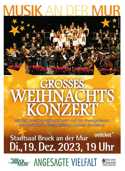 Sie sind hier: Aktuelles Großes Weihnachtskonzert mit dem Joseph-Haydn-Orchester und den Gesangsklassen der Musikschule 19.12.2023 - 19 Uhr - Stadtsaal Zurück